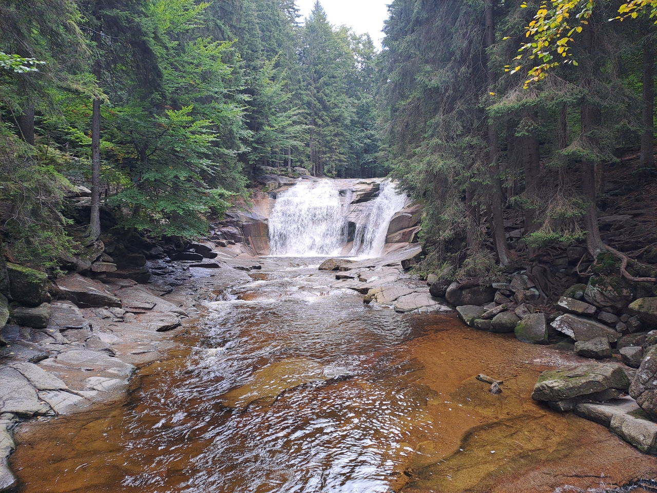 Počasí bylo první den jak na houpačce, občas déšť, občas polojasno. Z turistiky na čertovy kameny nás vyhnala z poloviční cesty přicházející bouřka a déšť. Druhý den odjezd do Harrachova na Mumlavské vodopády a turistika po okolí. Celkově zde nachozeno okolo 8 km. Počasí nám druhý den přálo. Třetí den úklid, předání chaty a odjezd do Mec Donaldu Mladá Boleslav.